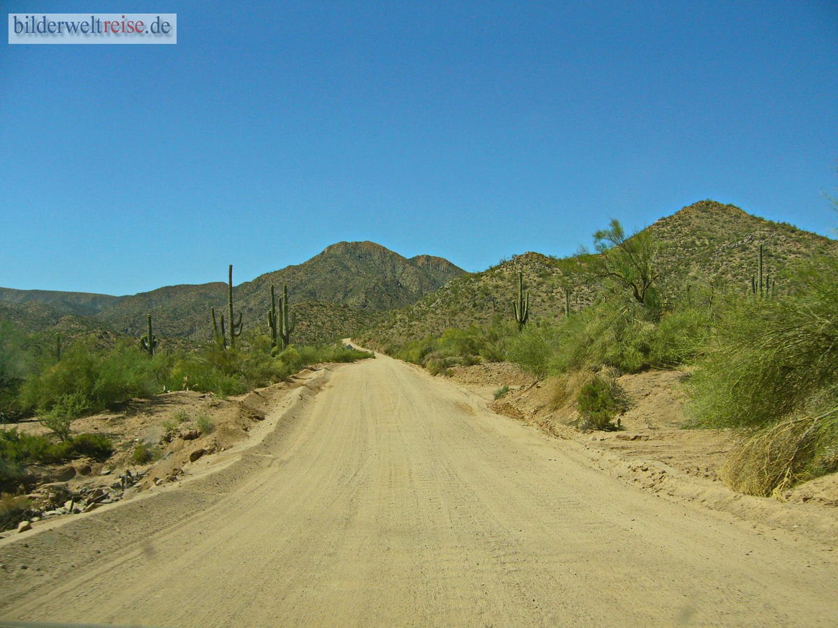 Der Weg führte uns weiter über den versteinerten Petrified Forest, ein Nationalpark, in dem versteinerte Baumstämme aus der Trias-Zeit zu finden sind, den Oak Creek Canyon nach Sedona. Von dort sind wir den Apache Trail, eine Tagestour auf alten Indianerpfaden, gefahren.