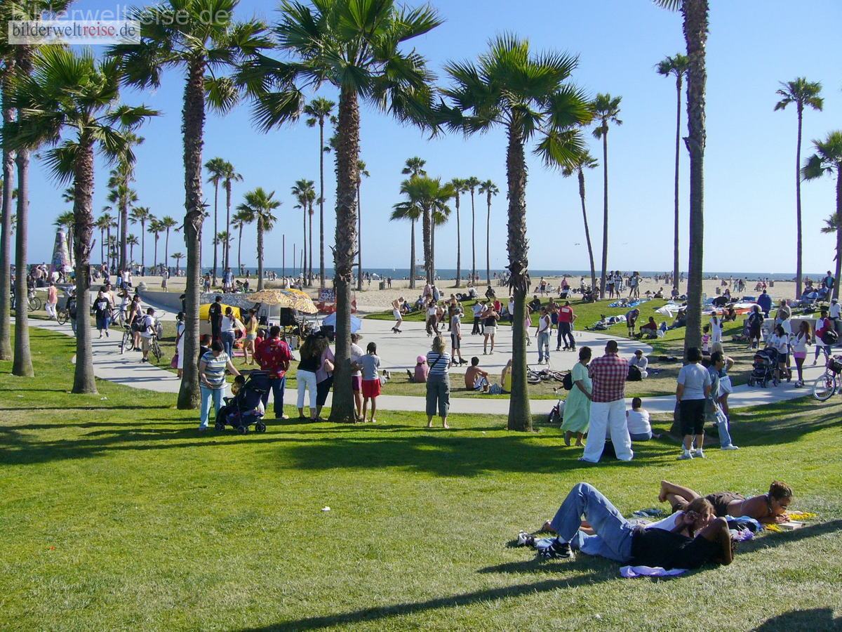 Venice Beach ist bekannt für seine entspannte Atmosphäre, seine bunte Promenade und seine vielfältige Kultur. Spaziere entlang des Ocean Front Walk und erlebe die lebendige Straßenkunst, die Musiker, Tänzer und Akrobaten bietet. Du kannst auch entlang der berühmten Muscle Beach, wo Bodybuilder ihr Können zeigen, schlendern oder Skateboarder in der berühmten Skatepark beobachten.