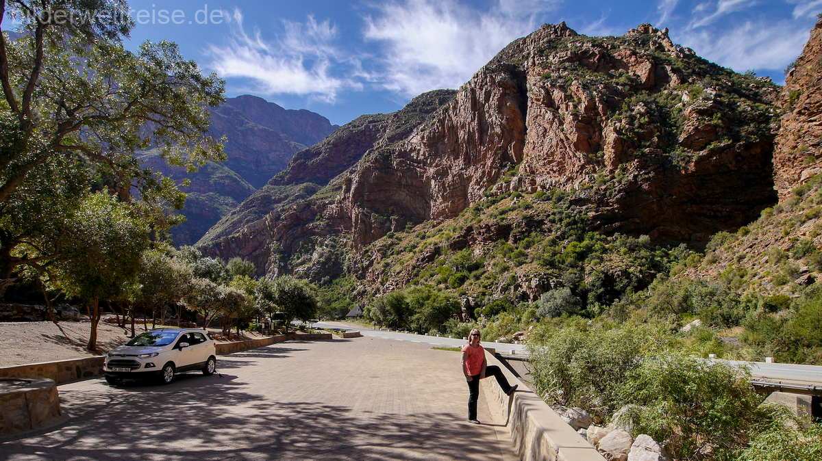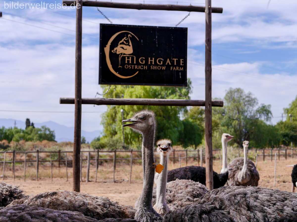 Der Swartbergpass ist wunderschön, wir sind bei dieser Reise von Prince Albert den gleichen Weg zurück gefahren weil der Pass gesperrt war. Haben ihn aber auf einer späteren Reise später überqueren können, wie könnt ihr hier lesen. In und um Oudtshoorn bieten einige Straußenfarmen Touristen ein besonderes Erlebnis um den Tieren recht nahe zu kommen. Wir waren in der Highgate Ostrich Show Farm . Alles sehr touristisch aber man sieht zumindest viele Strauße und natürlich kann man auch Straußenprodukte kaufen.