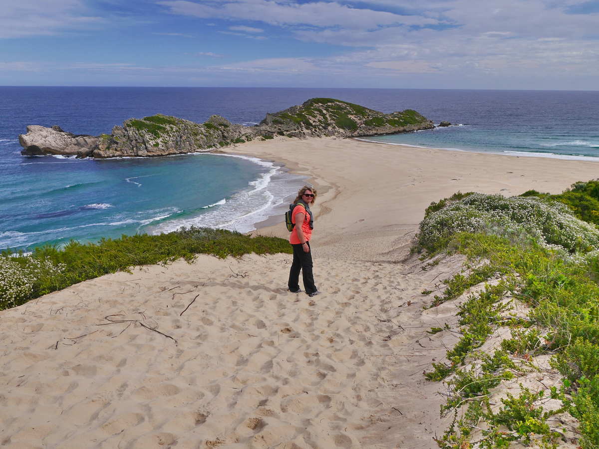 Das De Hoop Nature Reserve in Südafrika ist ein atemberaubendes Naturschutzgebiet, das sich an der südlichen Küste der Western Cape Provinz erstreckt. Hier findet man eine beeindruckende Vielfalt an Ökosystemen, von Dünenlandschaften über Fynbos bis hin zu Küstenwäldern. Man kann spektakuläre Landschaften und eine vielfältige Tierwelt entdecken. Man kann wunderbar in den unendlichen Dünen wandern und die Sonne genießen. De Hoop ist berühmt für die Walbeobachtung entlang seiner Küste. Von Juni bis November ziehen hier die südlichen Glattwale ein, um in den warmen Gewässern zu kalben. Deren Anblick konnten wir im April leider nicht genießen.